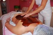 v závěru masáže se mění konzistence čokolády s medem |