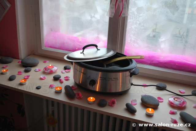 Vlastní masáž lávovými kameny. |