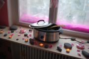 Ve speciální nádobě se lávové kameny zahřívají na teplotu 35 - 40 °C. |